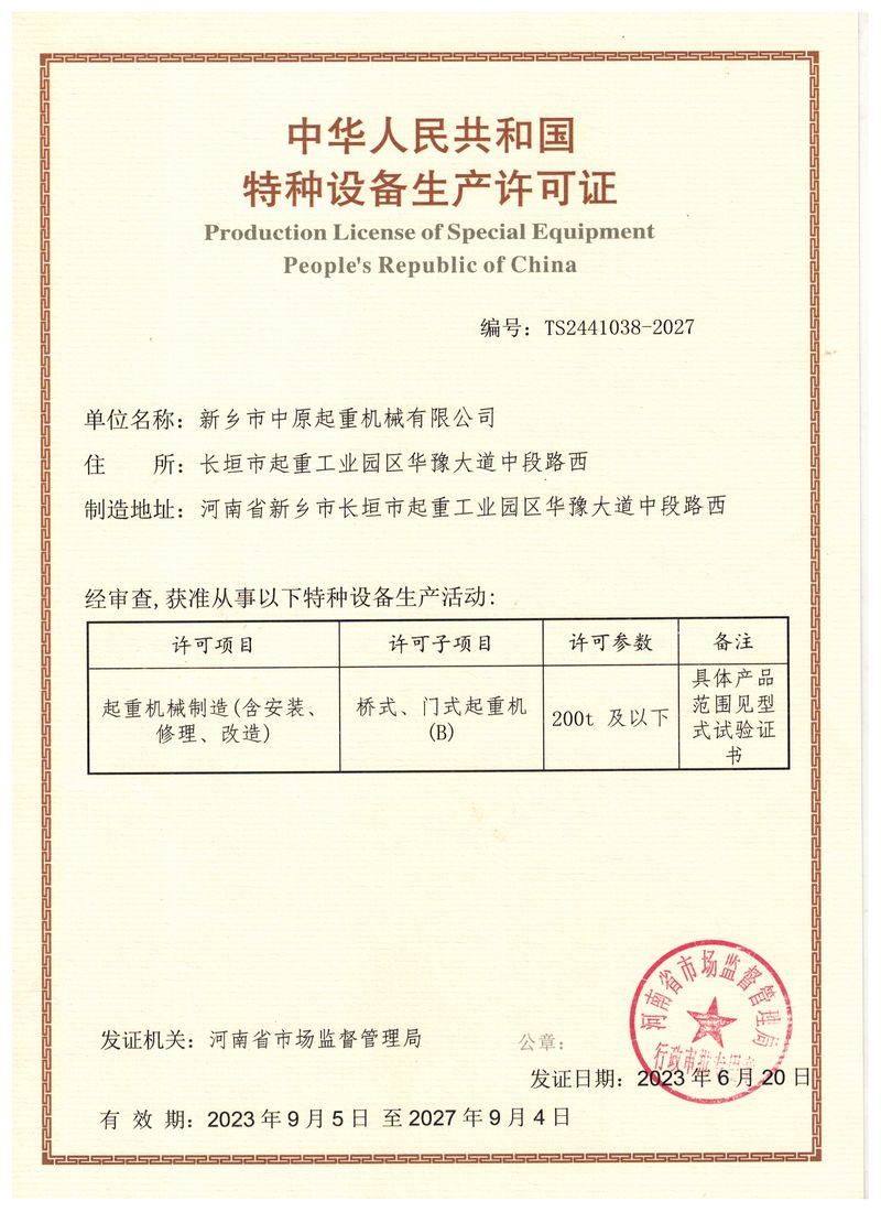 主要產(chǎn)品有:LD型1~20噸電動(dòng)單梁起重機(jī)系列產(chǎn)品;5~600噸通用橋式、門(mén)式、冶金、上旋轉(zhuǎn)下旋轉(zhuǎn)電磁吊、絕緣、抓斗、防爆起重機(jī)系列產(chǎn)品;LH3~100噸葫蘆雙梁系列產(chǎn)品;MH5~32噸葫蘆門(mén)式系列產(chǎn)品;0.5~40噸CD1、MD1鋼絲繩電葫蘆系列產(chǎn)品;HS1型0.5~20噸手動(dòng)葫蘆系列產(chǎn)品;0.5~10噸環(huán)鏈電動(dòng)葫蘆系列;0.5~40噸彎道電動(dòng)葫蘆系列產(chǎn)品;裝卸橋、造船門(mén)機(jī)、架橋機(jī)、鑄造吊和水電大噸位起重機(jī)系列產(chǎn)品。