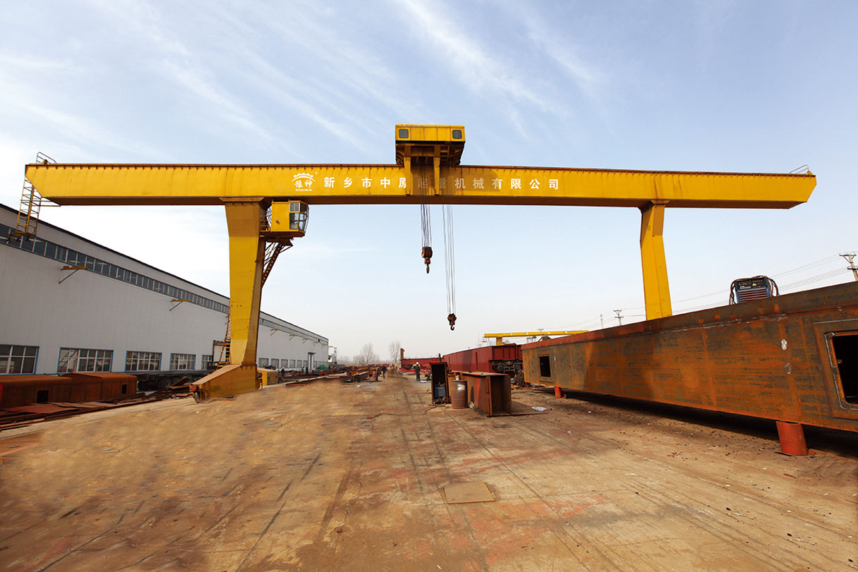 它的金屬結構像門形框架,承載主梁下安裝兩條支腳,可以直接在地面的軌道上行走,主梁兩端可以具有外伸懸臂梁。