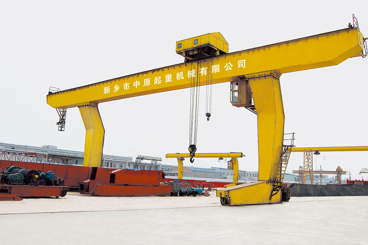 它的金屬結(jié)構(gòu)像門形框架,承載主梁下安裝兩條支腳,可以直接在地面的軌道上行走,主梁兩端可以具有外伸懸臂梁。